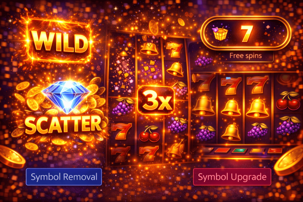 Os caça-níqueis modernos muitas vezes vão muito além de “combinar três símbolos”. Muitos jogos adicionam símbolos especiais e regras diferentes para manter a jogabilidade interessante. Exemplos comuns incluem símbolos do tipo wild e scatter, rolos em cascata, símbolos expansíveis e rodadas grátis que podem incluir multiplicadores.